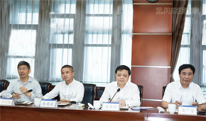 6月17日,全国政协常委、全国工商联副主席、正泰集团董事长南存辉一行来到紫金港校区,与浙江大学校长吴朝晖院士举行座谈,共同推动校企合作。