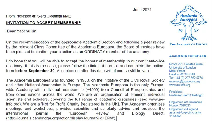 目前是英国萨里大学计算系“计算智能”学科讲席教授(Distinguished Chair Professor), “自然计算与工程研究组”负责人。曾任中国教育部“长江学者”讲座教授,芬兰国家技术创新局“芬兰讲座教授”, 2021年4月入选德国联邦教育与研究部“洪堡人工智能讲席教授”。目前担任《IEEE认知与发育系统汇刊》主编,Springer《复杂与智能系统》主编。曾任IEEE计算智能学会副理事长,IEEE杰出演讲人。已发表学术论文400余篇,其中IEEE汇刊长文96篇,获美国、欧盟和日本专利9项。据Google Scholar, 其论文被引用总次数26,000余次,h-index 76,入选Web of Science 2019、2020年度 “全球高被引科学家”。多次获“IEEE进化计算汇刊优秀论文奖”及“IEEE 计算智能杂志优秀论文奖”。2015年入选IEEE Fellow,2021年6月入选欧洲科学院院士。