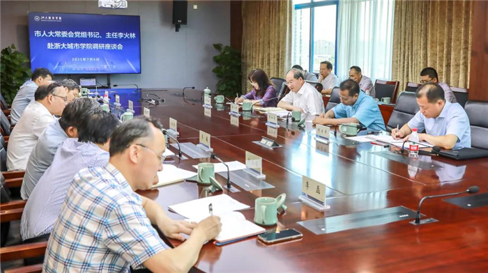 7月6日,杭州市人大常委会主任李火林赴他所联系的浙大城市学院调研。市人大常委会秘书长张如勇、教科文卫工委主任郑利敏、办公厅副主任明启强随同调研。
