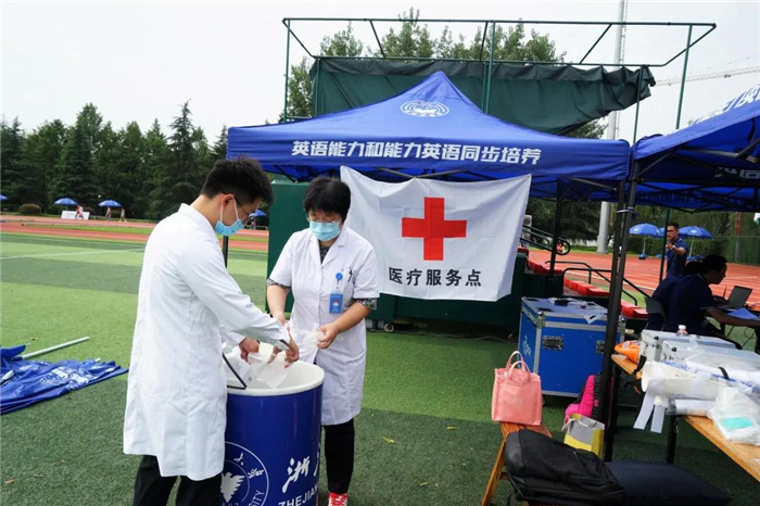 为运动员健康考虑,此次田径锦标赛还设置了几处医疗点。东田径场医疗点的两位医生告诉我们,医疗点有许多较为常见的外用药以及急救药品和设备,该处主要负责对运动员急性损伤、外伤的处理,这两日碰到较多是运动员跑步后虚脱的情况,让他们通过休息、吸氧等方式缓解,暂时未碰到较为严重的情况。