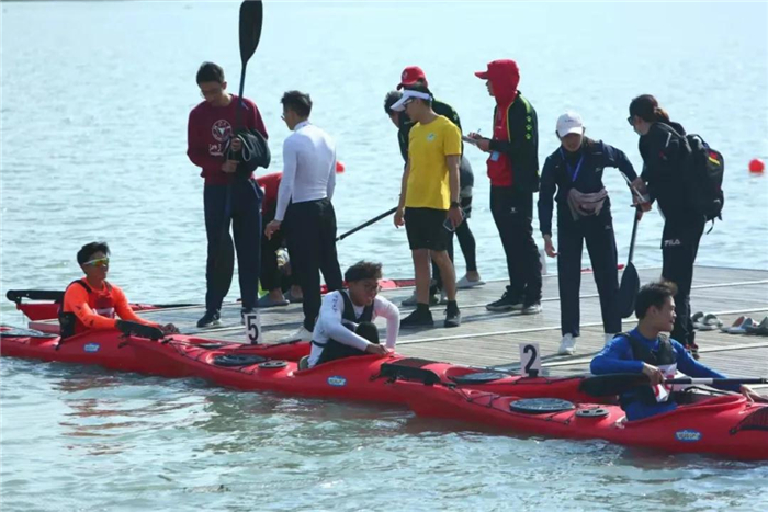 桨板项目之后是皮艇项目的决赛,刘林佳和张可欣两位队员分别在甲组女子500米单人皮艇和丙组女子500米单人皮艇项目中先后摘银。最后进行的是甲组男子500米双人皮艇的决赛,我校刘大勇和李茂两位队员奋力拼搏,获得了第六名。
