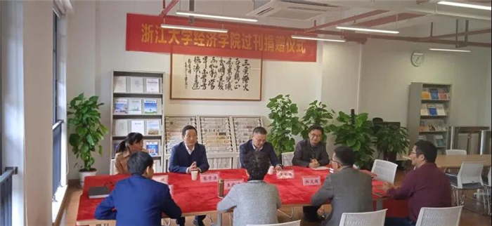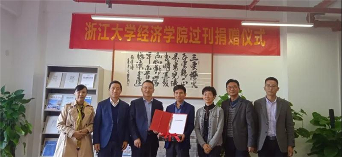 近日,浙江大学经济学院向湖州师范学院图书馆捐赠过刊仪式在浙江大学经济学院211举行。经济学院党委书记张子法,湖州师范学院图书馆馆长王伦光,浙江大学图书馆副馆长田稷,湖州师范学院图书馆原馆长龚景兴、副馆长杜文超出席仪式。湖州师范学院图书馆办公室和浙江大学经济学院资料室相关人员参加仪式。仪式由浙江大学经济学院副院长王义中主持。