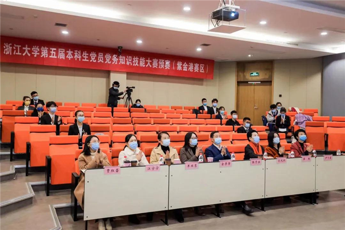 12月10日晚,浙江大学第五届本科生党员党务知识技能大赛预赛(紫金港赛区)在经济学院120报告厅举行。经济学院党委书记张子法,关工委求是宣讲团副团长彭凤仪,党委学工部副部长金芳芳,校团委副书记梁艳,计算机科学与技术学院党委副书记单珏慧,经济学院党委副书记卢飞霞,党委宣传部正科职秘书江宁宁,党委组织部副科职组织员贾红蕾等领导和老师出席比赛。本次比赛由党委学生工作部主办,经济学院承办,共有来自18个院系的18位选手参赛,600余名师生通过线上直播形式观摩比赛。