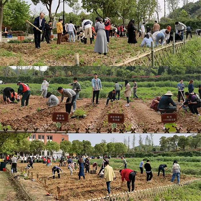 舟山校区西南角有一块预留待建地,在学院总务部门的带领下,校区后勤物业员工利用工休时间,对这块地持续进行开荒平整、土石分离、田地起垄等工作,共开发出千余平方米的“试验田”,为师生开辟了可以开展种植管理实践、土壤改良研究等劳动实践的基地。