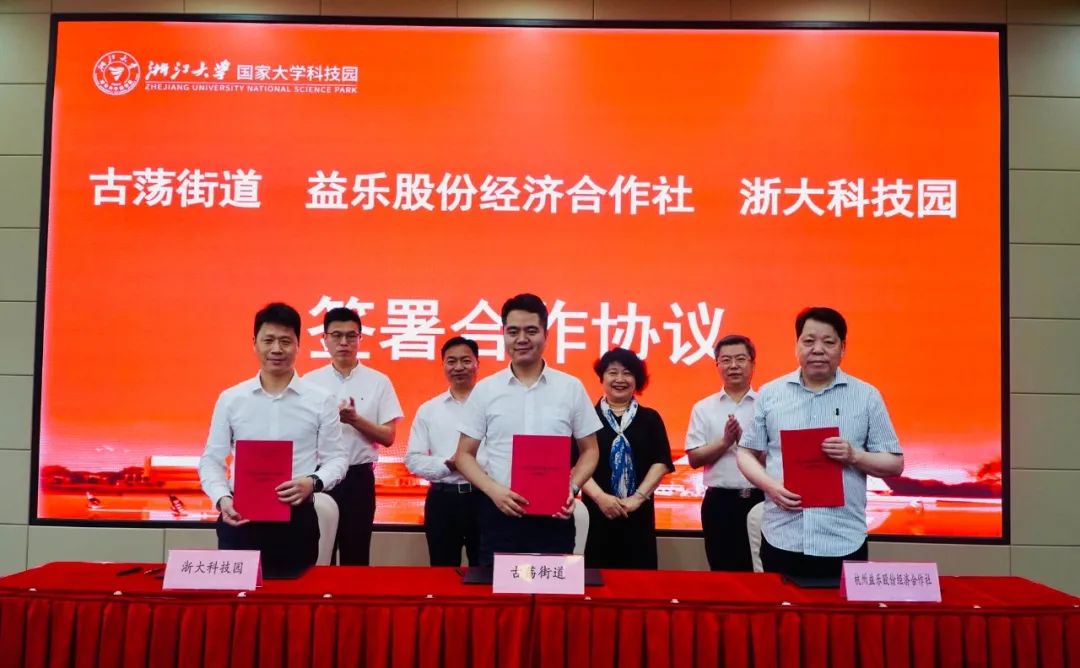 会上,浙大科技园总经理褚如辉与古荡街道办事处主任徐东旭和杭州益乐股份经济合作社书记、董事长沈新华,分别代表合作单位签署园区运营合作协议。与会各方就“文化与科技融合产业园”的建设与发展,进一步加强区校合作和融合创新、高质量发展高校经济等事宜进行了深入交流。