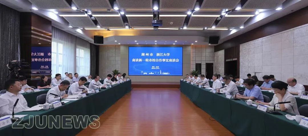 7月5日上午,湖州市-浙江大学商谈新一轮市校合作事宜座谈会在紫金港校区举行,在新的更高起点上谋划和推进新一轮市校合作。浙江大学党委书记任少波、湖州市委书记陈浩出席会议并讲话。