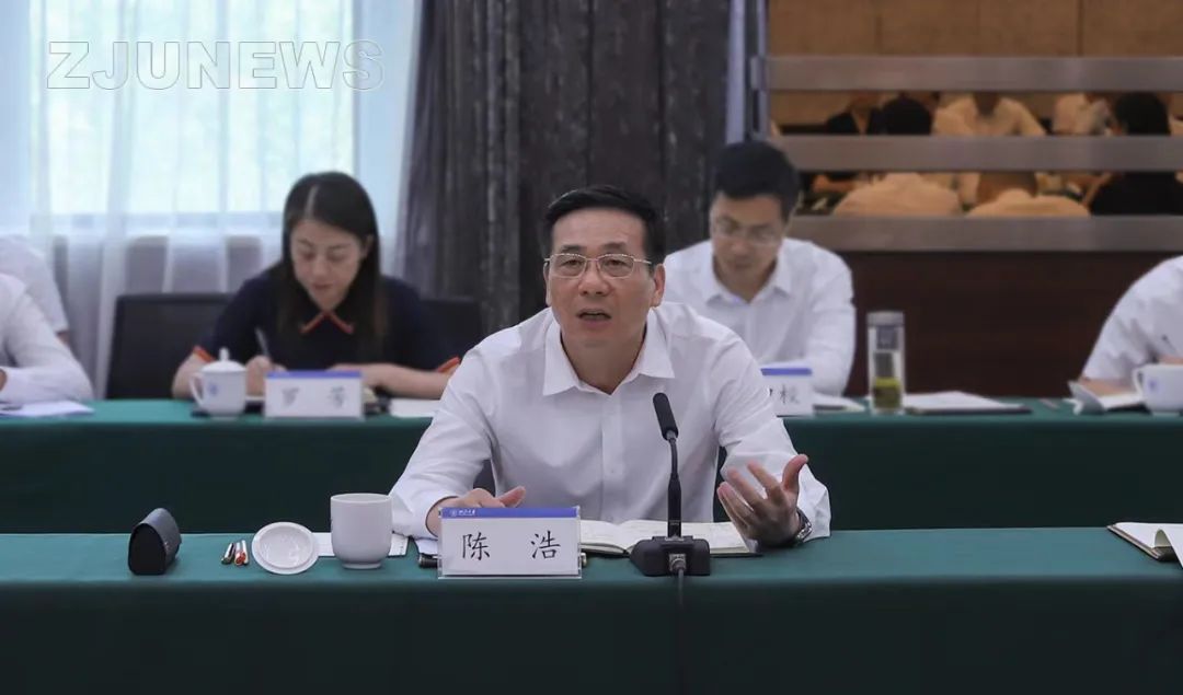 会议听取了市校合作情况介绍,并就打造高能级平台、促进科研成果转化、加强生态文明建设、推进“双碳”战略合作、深化共同富裕研究、助力城市品牌建设等进行互动交流。浙江大学副校长黄先海主持座谈会。湖州市领导徐仲仪、梅梓华、阮叶萍、宋波、钱洪文,浙江大学领导叶民、傅强,中国工程院院士高翔和市校双方相关部门负责人等出席会议。座谈会前,陈浩一行还参观了浙江大学科技创新馆。