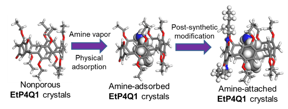 对非多孔自适应晶体的气-固相合成后修饰进行研究并做出详细的机理解释,展现出物理吸附与化学吸附相结合的特性。