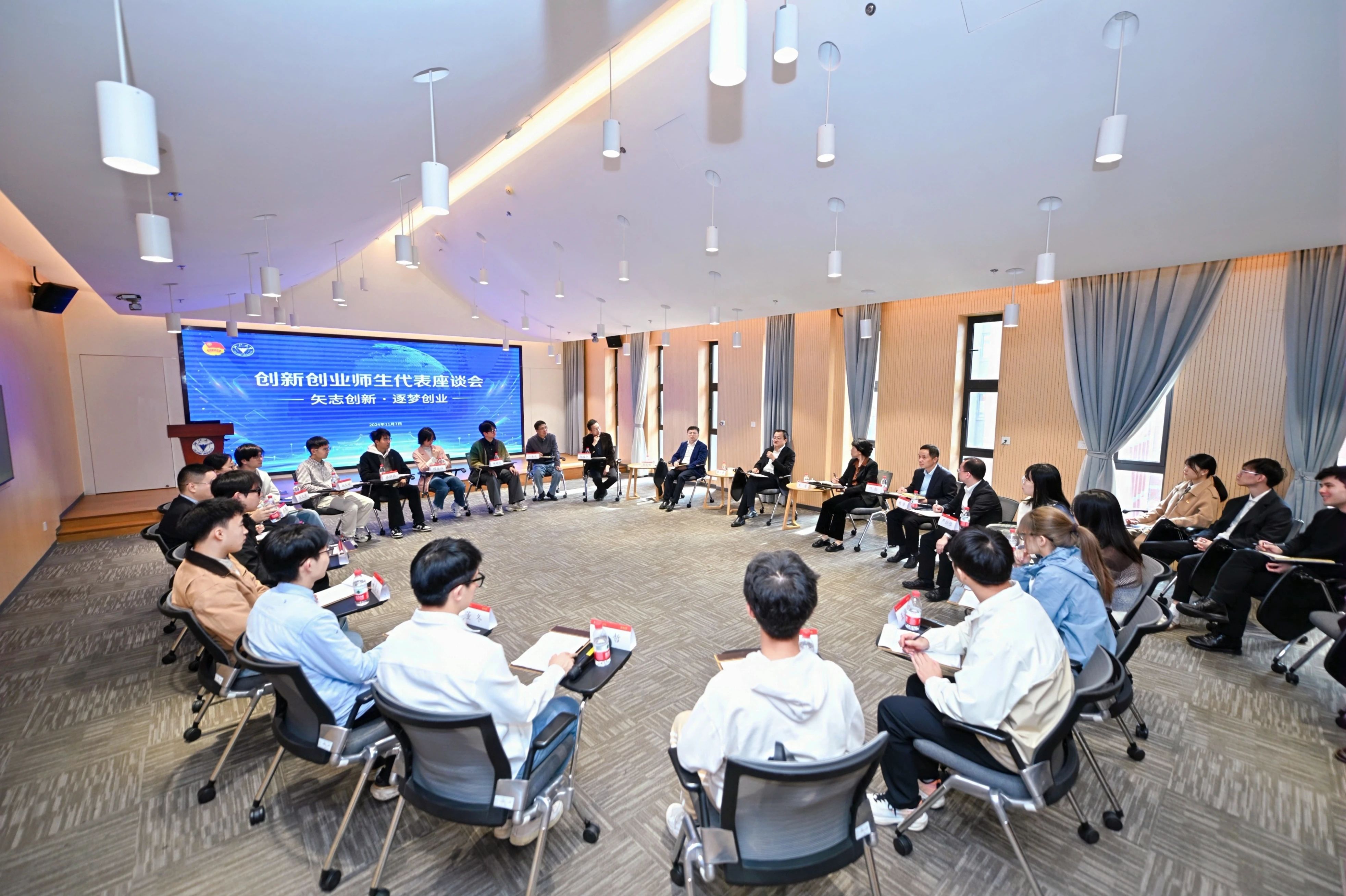 11月7日上午,校长杜江峰院士与第十四届“挑战杯”秦创原中国大学生创业计划竞赛中获奖的师生团队围绕“矢志创新·逐梦创业”主题座谈交流。