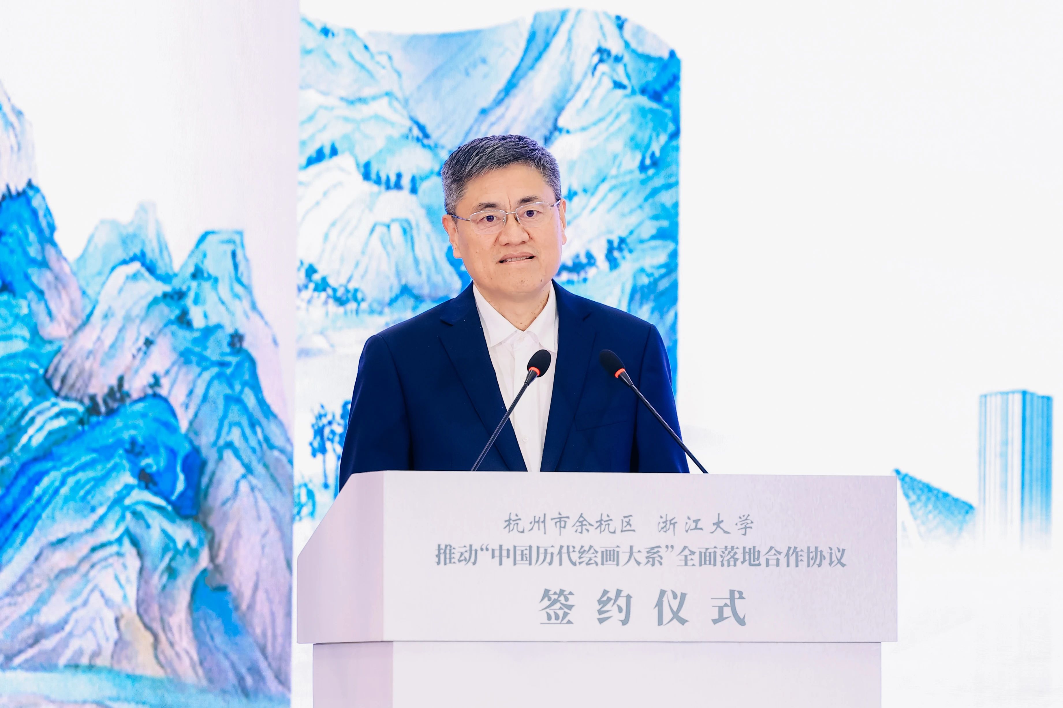 11月22日,浙江大学与杭州市余杭区推动“中国历代绘画大系”全面落地合作协议签约仪式在“中国历代绘画大系”典藏馆举行。浙江省委常委、宣传部部长赵承见证签约并宣布“中国历代绘画大系”典藏馆启用,浙江大学党委书记任少波讲话,浙江大学发展委员会主席、“中国历代绘画大系”编纂委员会主任张曦出席。