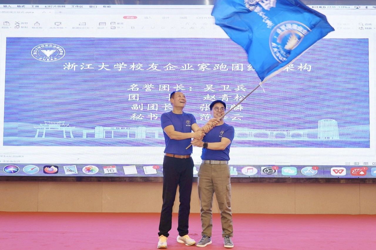 浙大校友企业家同学会企跑团成立2024年11月16日,在湖州马拉松赛前夕,浙江大学校友企业家同学会企跑团成立及授旗仪式在湖州龙之梦钻石酒店举行。 浙江大学工会常务副主席张子法、浙江大学校友企业家同学会会长吴卫兵、常务执行会长兼秘书长杨钦飚、执行会长兼企跑团团长赵青松、校友企业家同学会执行会长浦坚及杭州、湖州、绍兴、金华、嘉兴、台州、宁波·舟山、温州、衢州、江苏、皖南、诸暨、上虞、嵊新、柯越等各地校友企业家企跑团团长、秘书长近百人参加成立仪式。